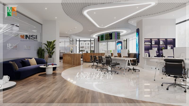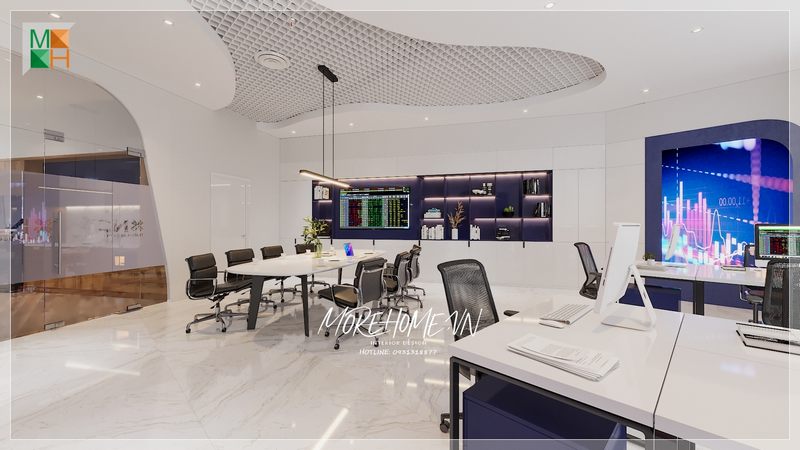 Thiết kế văn phòng với các bộ phân được phân bố không gian làm việc riêng nhưng vẫn gắn kết với nhau trong một tổng thể qua vách kính cường lực