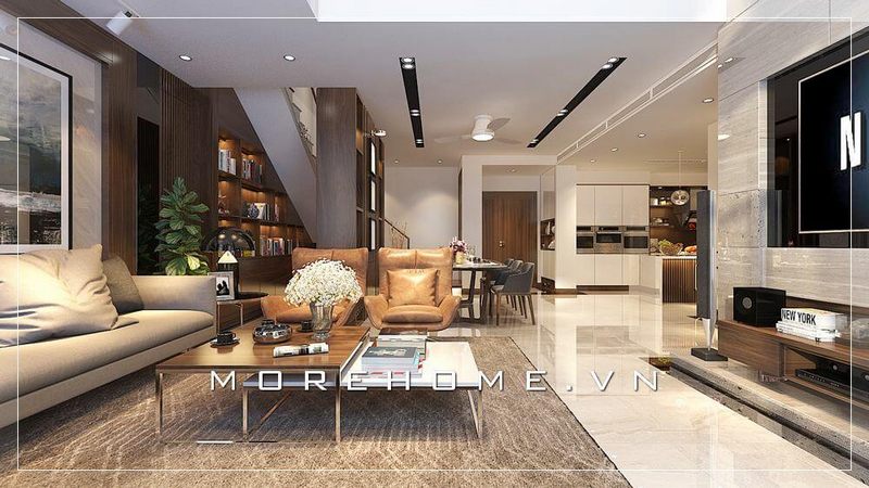 Thiết kế nội thất phòng khách liền phòng ăn hiện đại, đẹp, sang trọng cho căn hộ thông tầng như chung cư duplex, penthouse.
