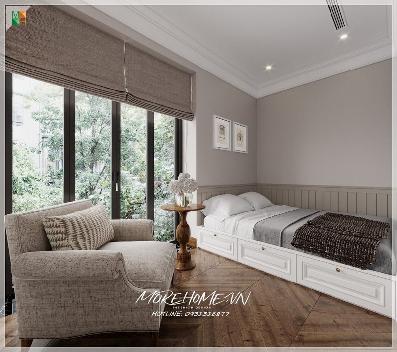 Thiết kế nội thất phòng ngủ sang trọng với tông màu trắng tại nhà phố An Hưng Hà Đông
