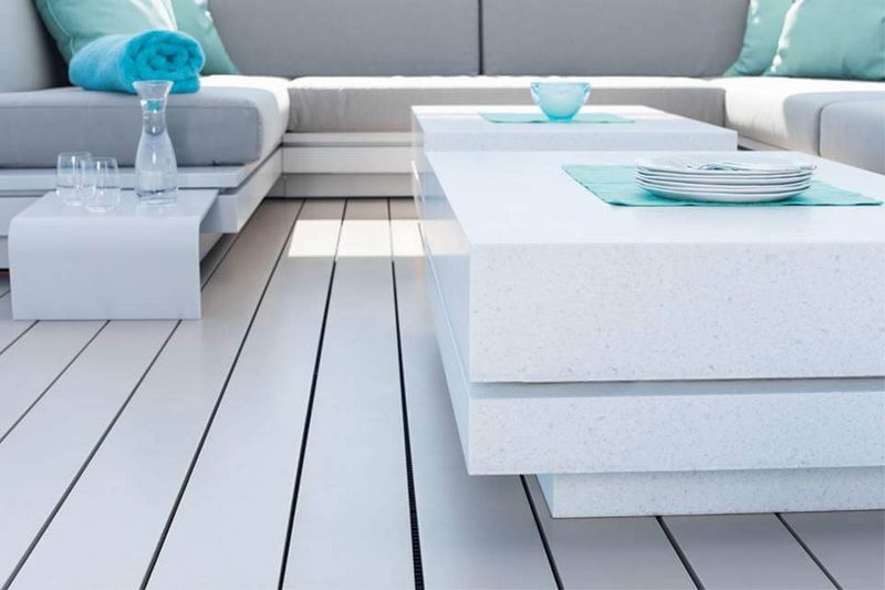 Thi công mẫu bàn trà bằng đá Himacs màu trắng rất tinh tế và sang trọng cho không gian nhà phố, chung cư, biệt thự.