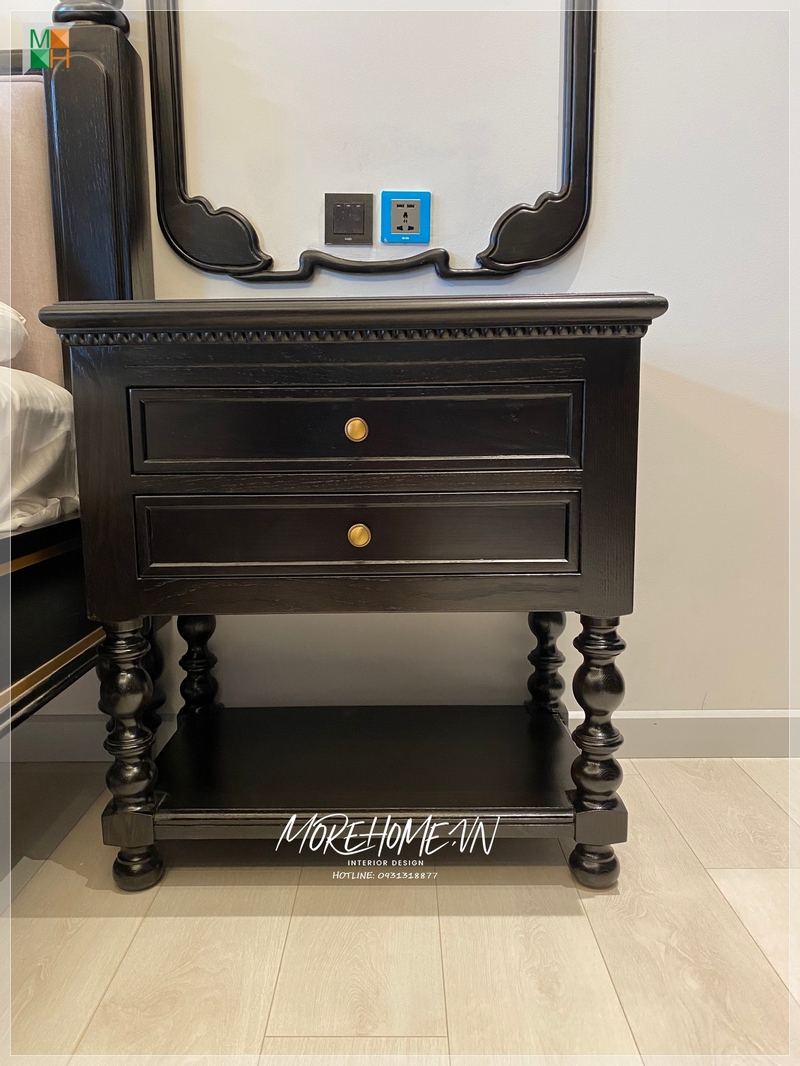 Thi công tab đầu giường gỗ tự nhiên màu đen phong cách indochine vẻ đẹp hiện đại và cổ điển đan xen thể hiện sự sang trọng, cao cấp cho không gian