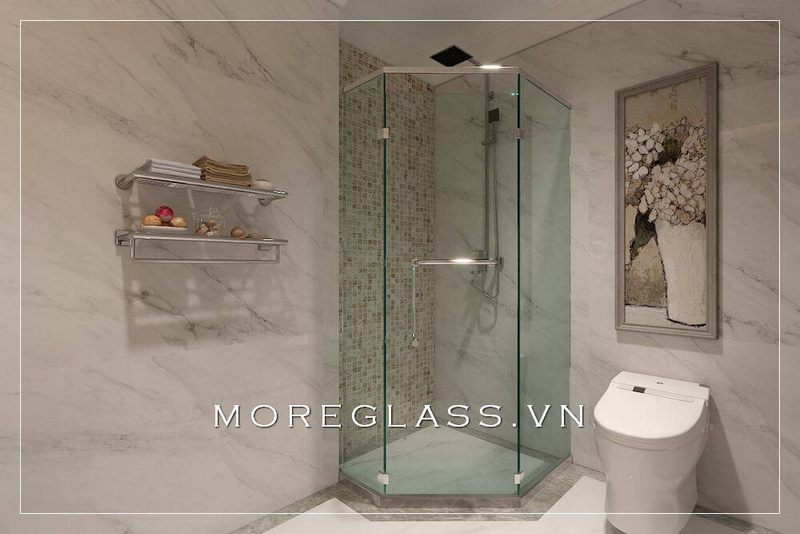 Mẫu thiết kế phòng tắm kính cường lực cao cấp màu trắng trong suốt mang vẻ đẹp sang trọng, lôi cuốn