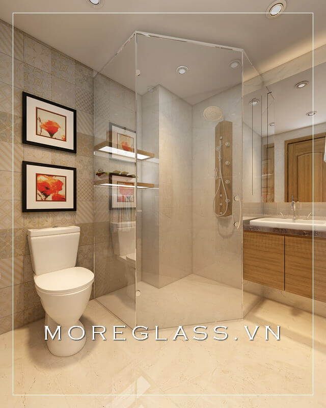 Mẫu thiết kế phòng tắm kính cường lực cho căn hộ chung cư cao cấp.