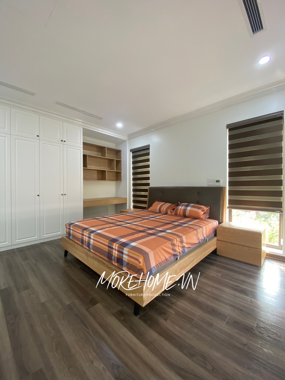 Hình ảnh thi công thực tế phòng ngủ chung cư phong cách hiện đại do Morehome thực hiện