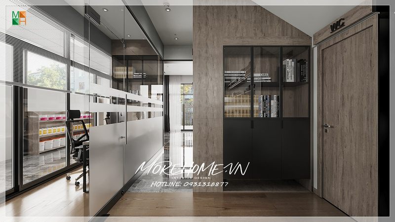 Thiết kế hành lang phòng làm việc sang trọng với cách bài trí khoa học, gọn gàng giúp tạo được ấn tượng tốt với nhân viên và đối tác đến bàn bạc làm ăn.