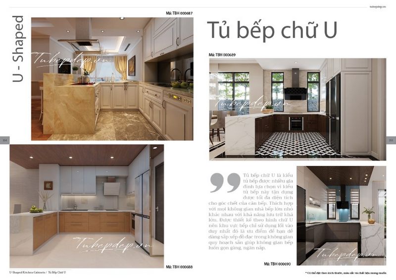 Tổng hợp 4 mẫu tủ bếp chữ U đa phong cách: hiện đại và tân cổ điển cho phòng bếp của biệt thự, nhà phố tiện nghi hơn