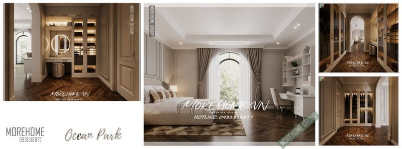 Với phòng ngủ có diện tích rộng, có thể bố trí riêng một khu vực thay đồ, vừa giúp việc cất trữ và tìm kiếm đồ đạc đơn giản nhanh chóng hơn, vừa giúp giải phóng không gian xung quanh giường ngủ của gia chủ