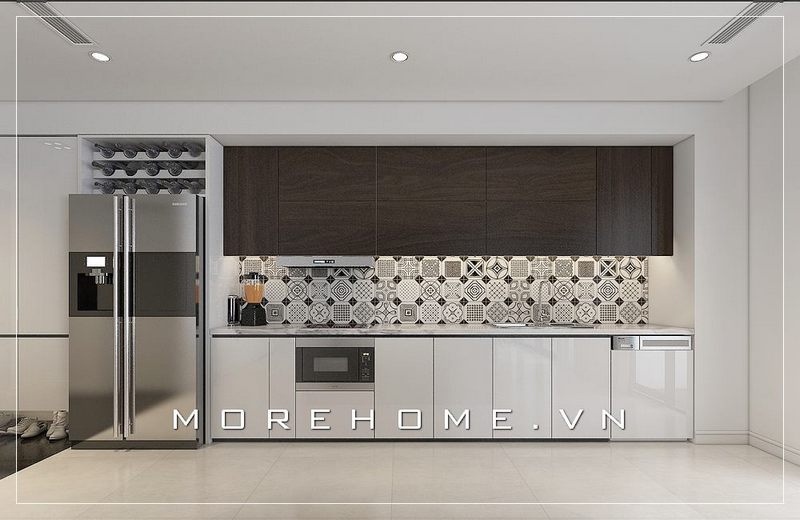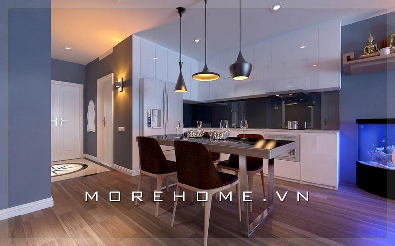 Nội thất phòng bếp hiện đại và tiện nghi được thiết kế để phù hợp với nhà chung cư.